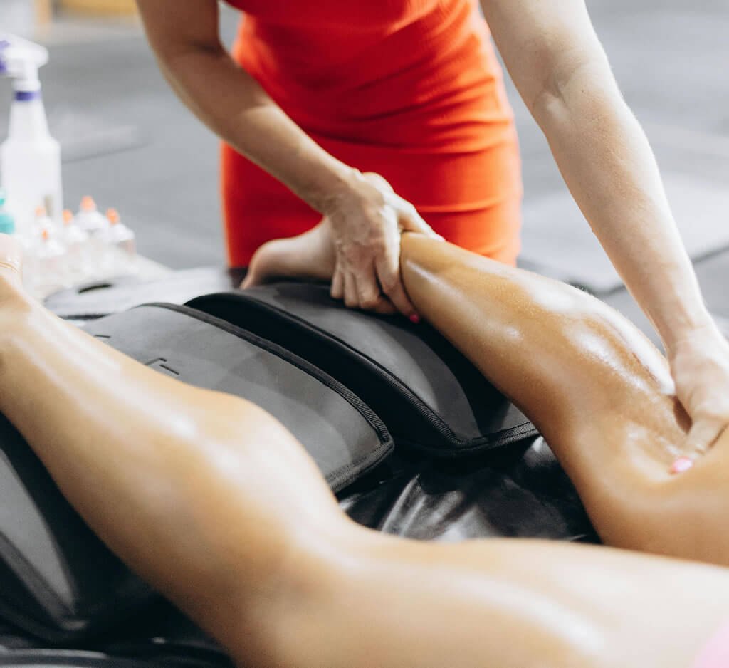 Massagem Tailandesa Completa: Sessões no chão (colchonete), com roupas leves, focadas em alongamentos passivos e pressão rítmica para liberação miofascial.